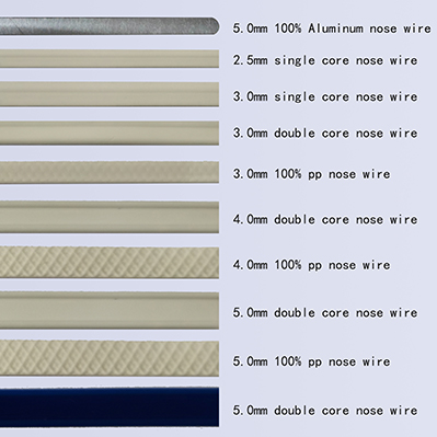 חוט האף היחיד מורכב מחתיכה של חוט ברזל 0.45 / 0.8 מ"מ 0.45 מ"מ / 0.5 מ"מ 0.45 מ"מ / 0.5 מ"מ ומתחם PP. בגלל חוט הברזל הפנימי שלו, יש לו אפקט קיבוע טוב יותר.